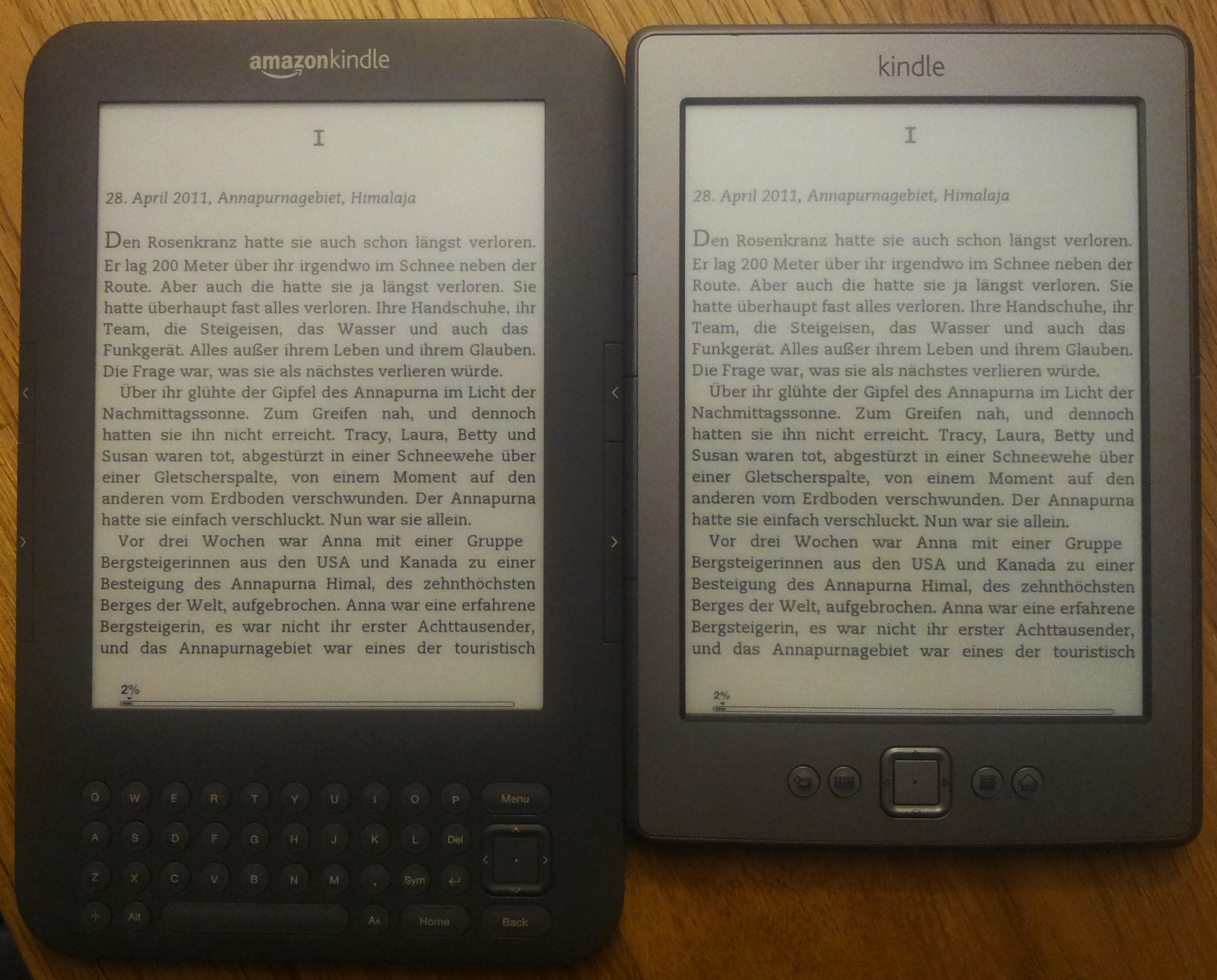 ![]() Dem Gesamturteil stimme ich aber zu, beide haben ihre Berechtigung und Vorteile. (Mir gefallen die Screensaver vom neuen Kindle ausgesprochen gut.) |