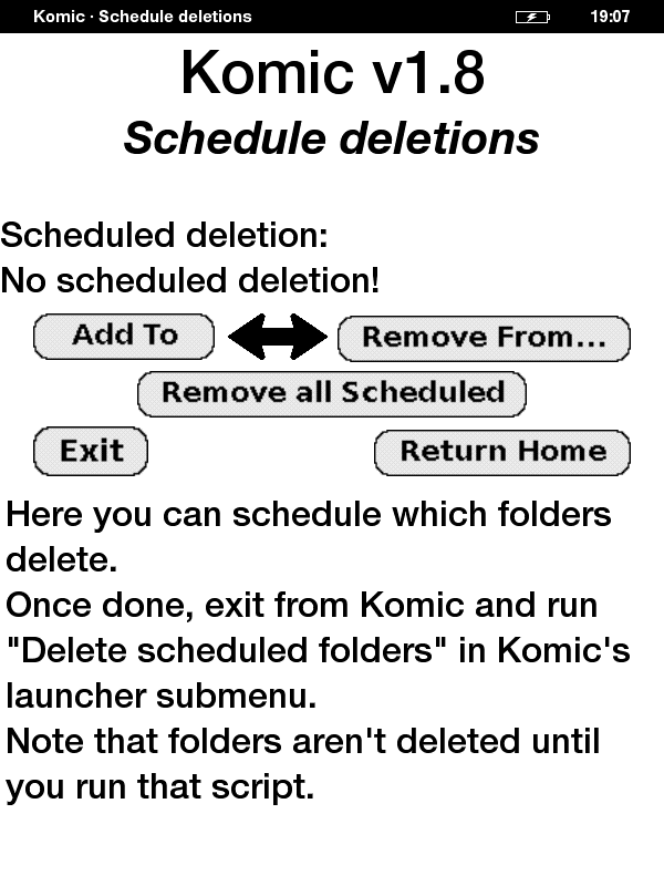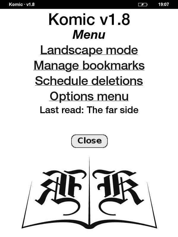 What's new: - buttons (thanks to Titano. BTW, I prefer first set of buttons. I'll add them to v1.8 but I'll link also second set so users can choose) - options menu with autosave and autojump + iphone ( ) style on-off switches- some code improvements - minor UI improvements - lots of "under-the-hood" fixes and improvements in ancillaries script (rename, delete and CBZ/CBR decompress) I'll release this new version by the end of July. I'm still trying to bring back pinch-to-zoom... My plan is to end the development with v2.0: it will add (in my dreams) image post processing (contrast/brightness) to make colour comics readable. Next, I'll take my time to convert Komic to a kindlet...(but I hope Amazon improves Image Viewer in the meanwhile!) |