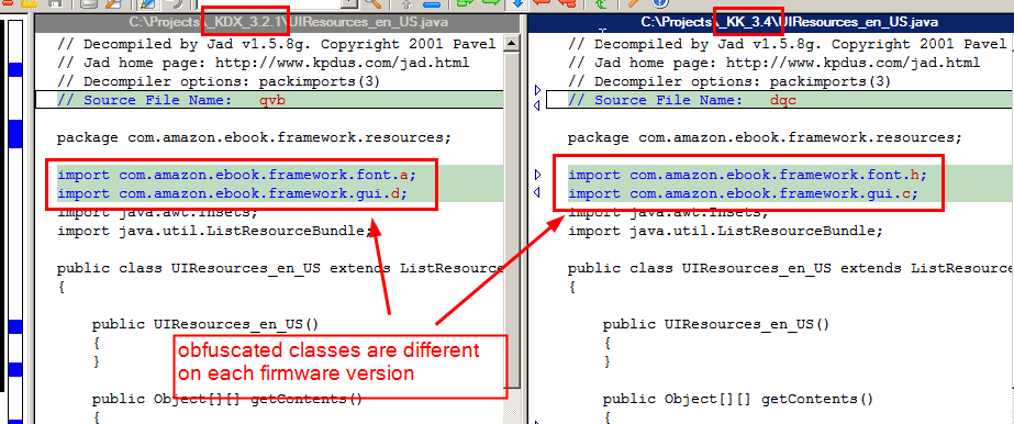 I see that it will be necessary to create a version for every version of firmware. This is the reason - see attachment. The code of MobiReader and framework are similar, so first I though it would be enough to create one file with _en_US in the end.... But this won't be enough, since import classes have different obfuscated name. So, it will be a routine process. |