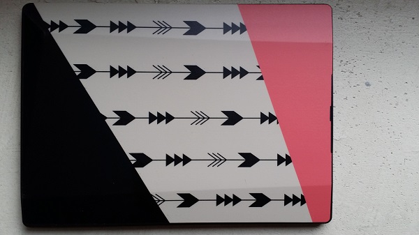 Pictures show the story -- mostly. This is the "Arrows" skin, but in applying it, I wasn't initially happy with my alignment and tried to take it off on the front, which, of course, ended up stretching it so that the fit was even worse. My solution? I actually cut off the top border of the front skin, to rely on the Kobo's black instead of the skin's black (and even to increase the black area a bit). I like it better! YMMV, of course.... |