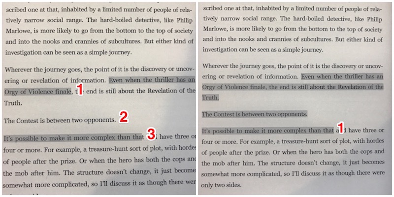 I have found an exception if the one sentence paragraph is the only text on a page, as in a quote on the beginning of a section, but overall, I can't highlight single sentence paragraphs. Last edited by issybird; 05-24-2017 at 08:08 PM. Reason: Oversize image thumbnailed. |