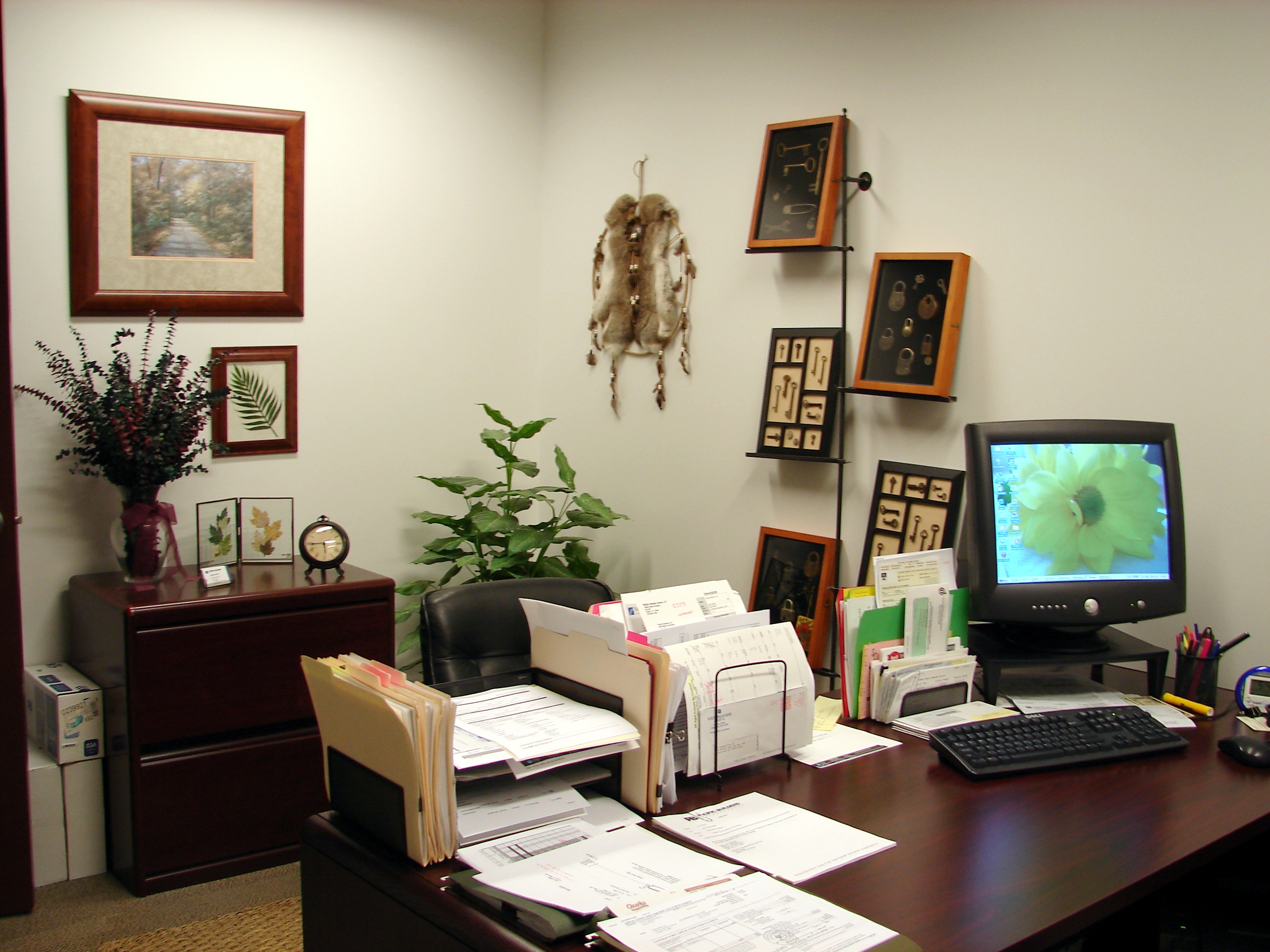 This was my last office. My company moved awhile back and now I have a (sort of) corner office with windows but it's a little smaller. Haven't gotten around to taking any pictures of the newer place yet.