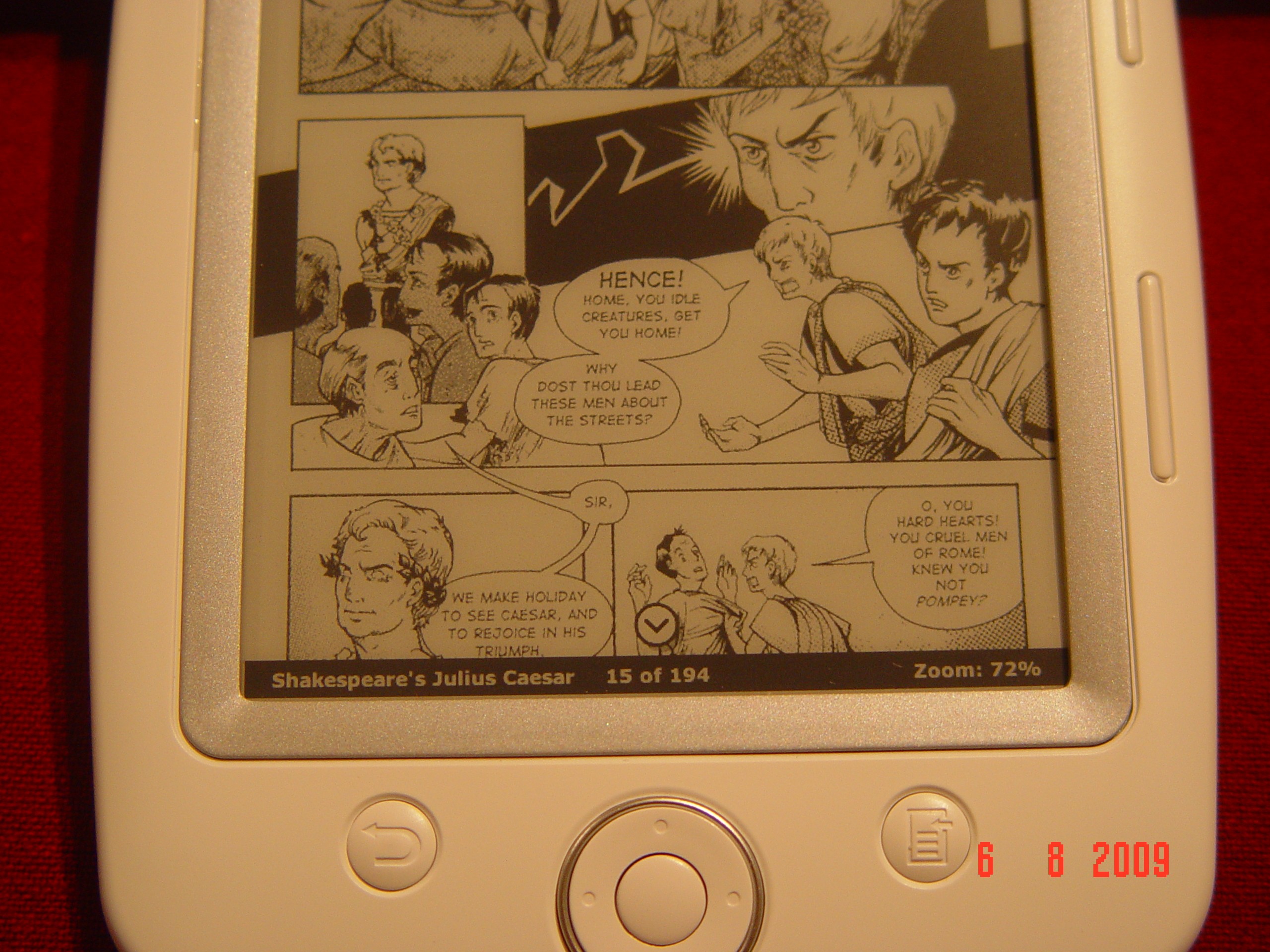 Oh, that's good news. Because I disagree that scrolling will kill the fun. I was worried for a moment that it wouldn't be readable. I've only read manga on a prs500, where I had to skip some smaller text bubbles (non critical anyway), because I couldn't read them. And I was worried that it'd be like that for all the speech bubbles. But if it's not, excellent! That'll make waiting for an affordable 9" device all the more easy.