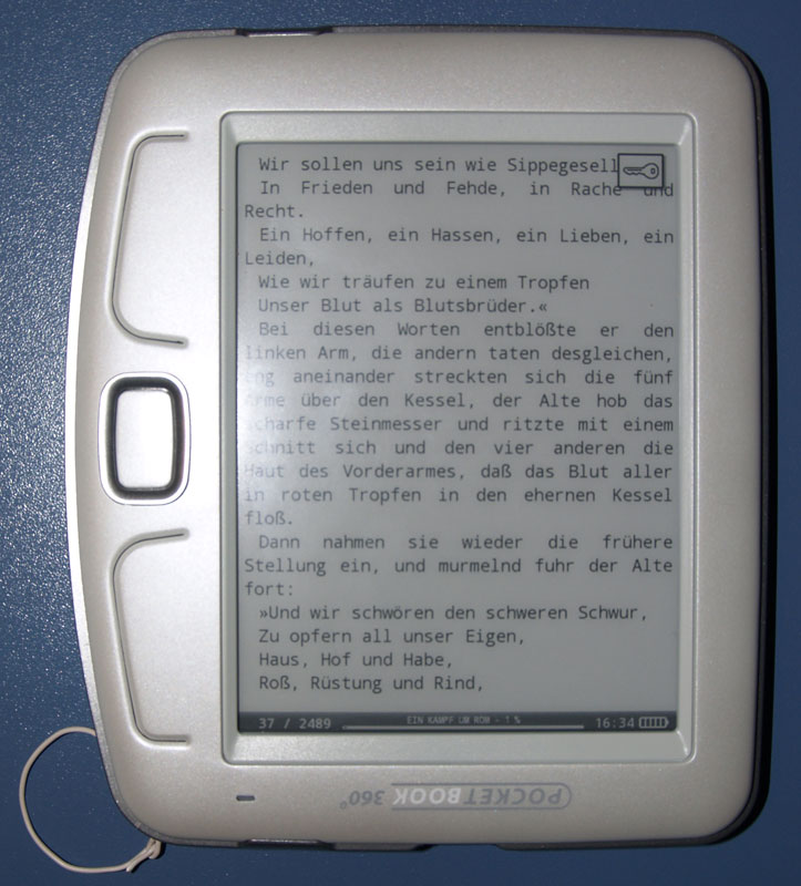 Danke für's Karma! ![]() @Forkosigan Gerne, doch war es diesmal auch Dein Verdienst! Im Moment lese ich übrigens ein PDF-Buch von Beam-ebooks. Der 2-Spaltenmodus des PdfReader im Pocketbook ist wirklich sehr praktisch, ich sehe z.Zt. keine Verbesserungsmöglichkeit (ausser vielleicht einer Leerranderkennung, aber das wäre sehr aufwändig). Das Blättern per Kippen ist für PDFs jedenfalls nicht geeignet, weil man meist nach unten blättert... |