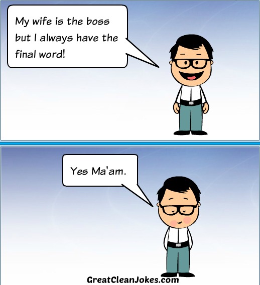 The young guy says, "That's OK. It's a coincidence. I'm looking for my wife, too. I can't find her and I'm getting a little worried." The old guy says, "Well, maybe we can help each other. What does your wife look like? The young guy says, "Well, she is 27 yrs old, tall, with red hair, blue eyes, long legs, big boobs, and she's wearing tight white shorts. What does your wife look like?" The old guy says, "Doesn't matter --- let's look for yours." |