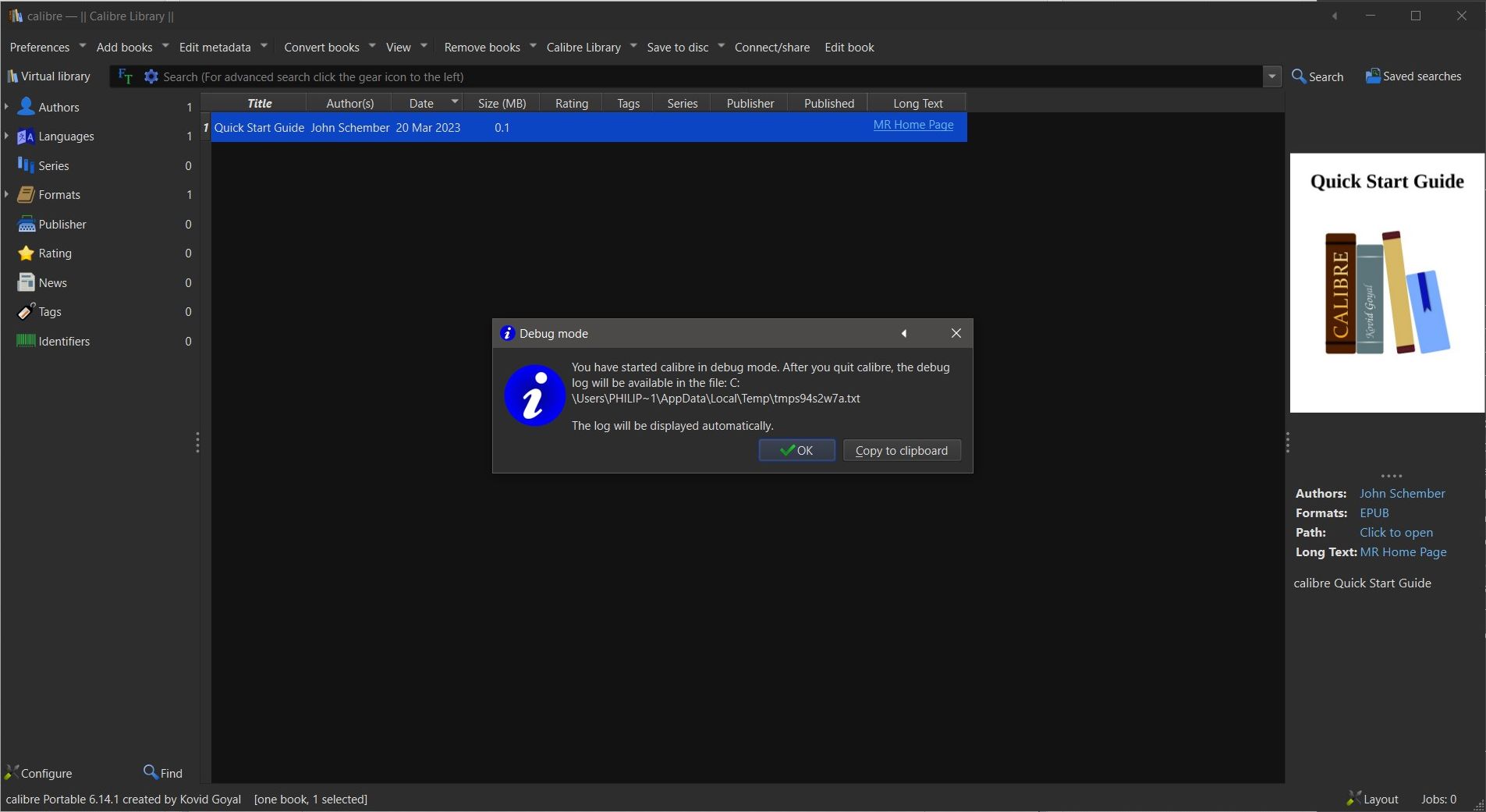 The bad news is: The protocol_default_apps = {'http:': 'C:/Program Files (x86)/Microsoft/Edge/Application/msedge.exe'} setting isn't working. FTR: Ordinarily I use the regular 64bit version of calibre that installs in c:\program files\calibre2. The reason I tried a freshly installed portable was to eliminate all customisations and plugins apart from JS and its js->nv->protocol_default_apps setting. I've also tried running calibre in Safe Mode to no avail. But, I have managed to invoke Edge, but not in the manner expected. In my testing yesterday I created a text file named "New Text Document" on my desktop, and a file:/// link to that file in my Blurb column which worked fine of course, so I deleted the file. But I didn't remove the link from Blurb. This morning I noticed the link on Book Details, but it wasn't clickable i.e. the mouse cursor didn't change to a 'hand'. So, I thought I'd see if it was the same in NV, it was clickable i.e. the mouse cursor did change to a 'hand', so I clicked on it, guess what…. et voila Edge pops up. BR |
