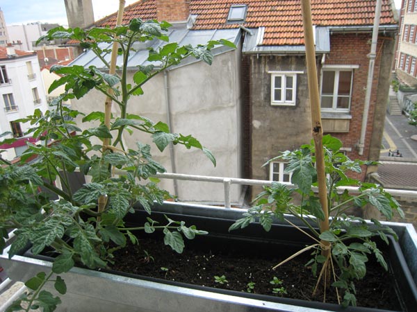 I think I see the beginnings of a flower on two of the tomato plants. What a suspense! |