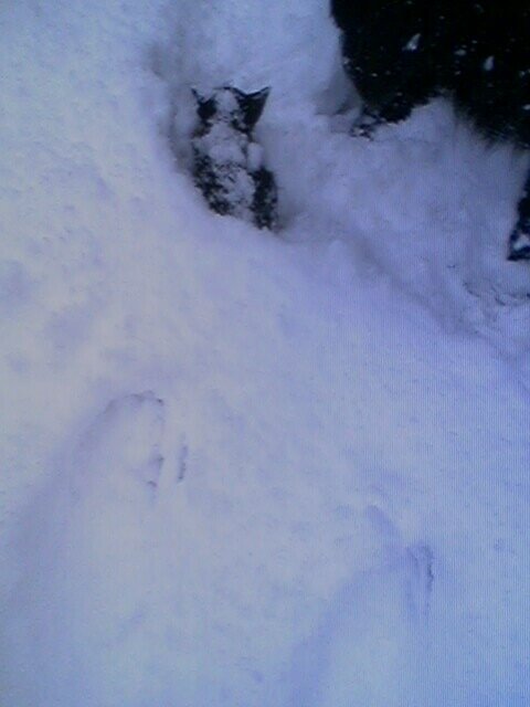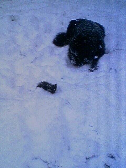 she! SHE!!! she was so worried about that little kitten! she kept picking her up and hauling her back to the house! and I'd take her back out to the snow and try to get pictures again!!!