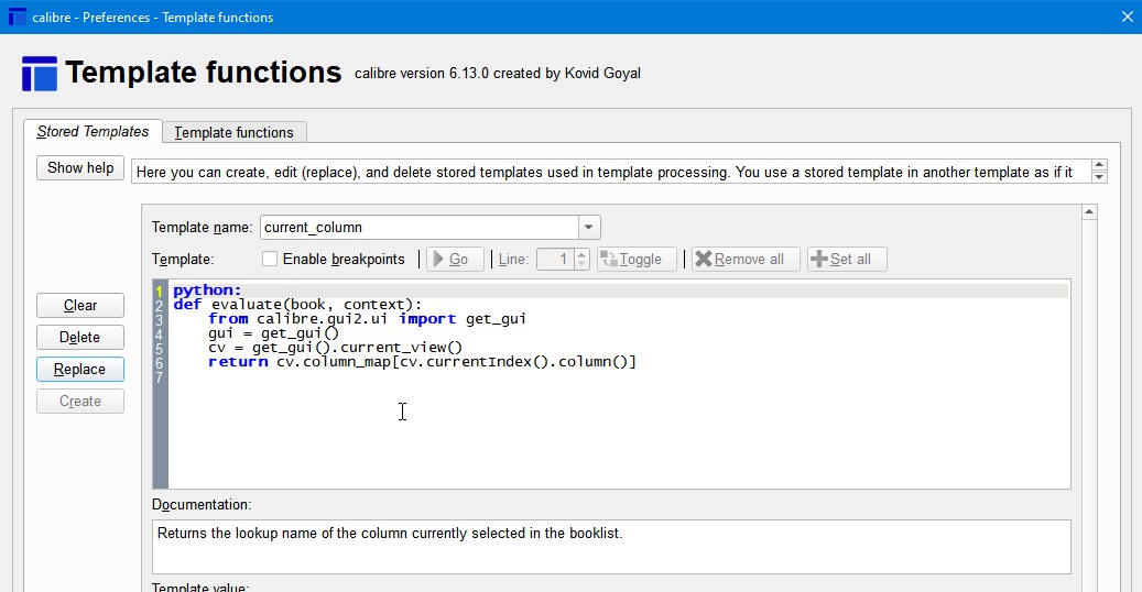 python: def evaluate(book, context): from calibre.gui2.ui import get_gui gui = get_gui() cv = get_gui().current_view() return cv.column_map[cv.currentIndex().column()] I slightly prefer the name "current_column", but I think it is more important that we use the same name. Last edited by chaley; 02-23-2023 at 12:06 PM. |