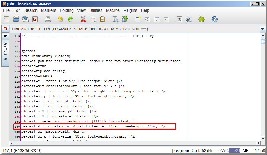 ). Now all is fine. I have a Kobo Mini, used font-size:26px;line-height:30px and did not change font-family. By the way, if someone uses only dictionaries he produced with penelope.py, penelope.py can be modified to define the font-size one likes without modifying libnickel.