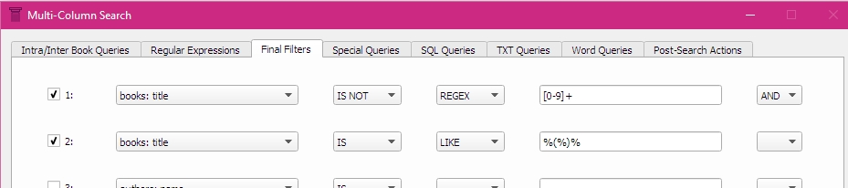 I just uploaded a new version of MCS: Version 1.0.63 - 02 June 2016 Final Filters: Added a new operator, "REGEX" This new Final Filters operator should allow you to narrow down your Special Queries search results. The more Filters you specify, the more refined will be your search. See the attached image. DaltonST |