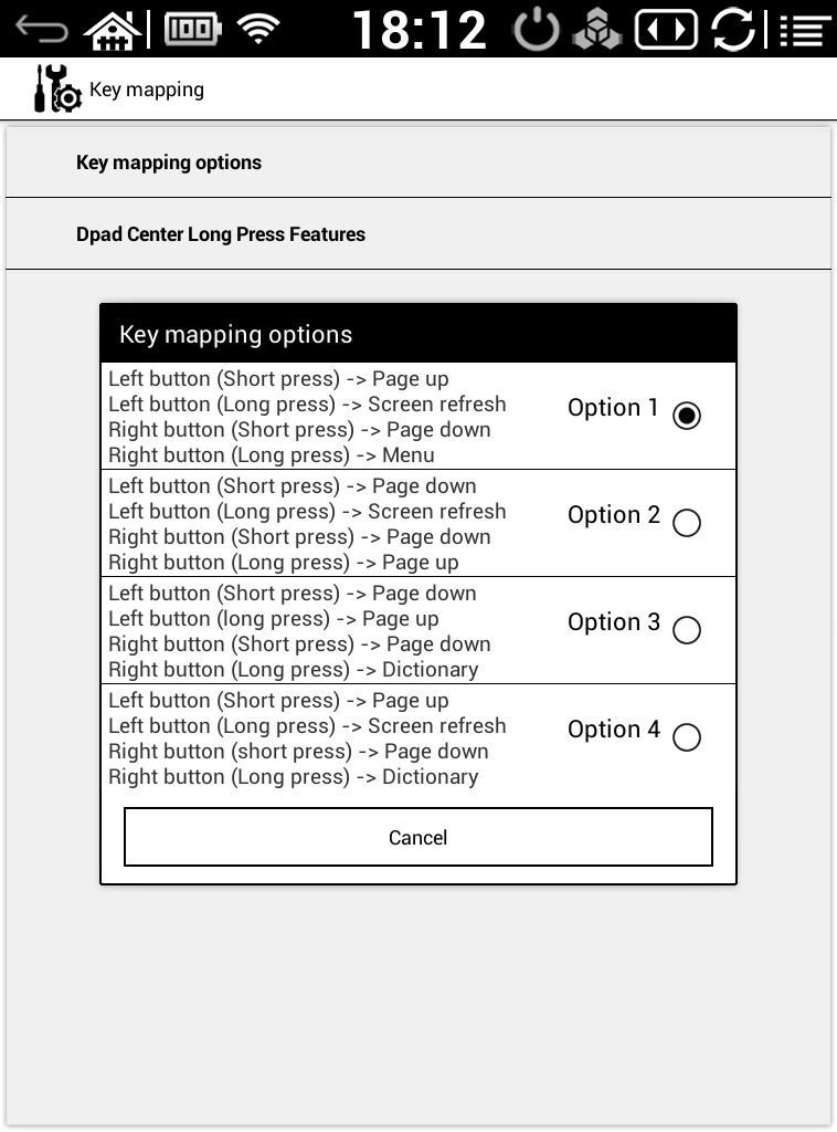 Thank you, I guess I was not specific enough.That is for the hardware buttons, which work fine. See attached for pic of virtual D-Pad. It is the black square in the middle of the screen. It appears if I long press my back button and would be very handy if I could get it to work, but currently none of the selections on it are clickable.