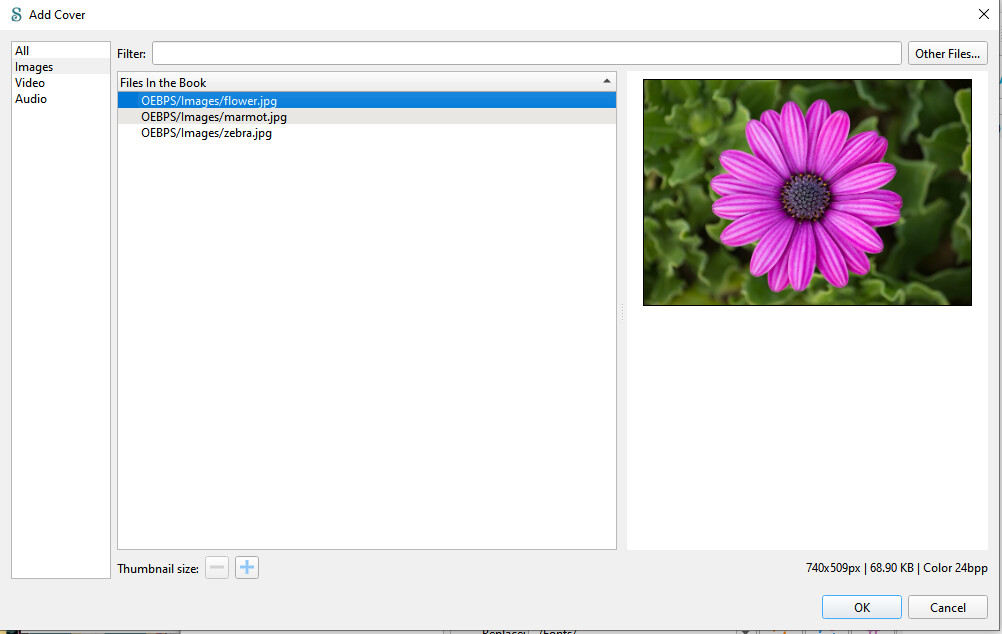 You are probably correct, this is nothing new. But, I would like to use the arrow keys to cycle through the list. Consider this: 1. Start Sigil and add in some images that are potential covers, say they are flower.jpg, marmot,jpg and zebra.jpg. 2. Open Add Cover. screenshot1 shows the picture at top of the list (flower) but no highlighting. I want flower as the cover, I know what a flower looks like, and so I click OK and all is well. 3. Well, I don't want flower so I will use down arrow to see the next image. screenshot2 shows nothing has changed except flower.jpg is highlighted on the list. But I don't want flower, why didn't the down arrow key advance the list the next image in the list? 4. I press down arrow again and the image now changes to the next item in the list: marmot. Again, no highlighting, but I know what a marmot looks like. I don't want that image either so again with down arrow. There is no effect and so the down arrow key is now useless: I can't cycle through the list with down arrow key nor the up arrow key. Here's my opinion: 1. I want to be able to cycle through the list with the up/down arrow keys but I can't, I have to use multiple mouse clicks to cycle through the list. 2. There should always be highlighting that corresponds to the visible image. Highlighting is positive confirmation that the visible image and the filename are paired. If you know names and not pictures then using the mouse (or shortcut) is the only way to go. |