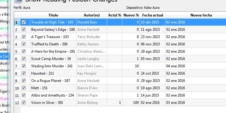 And I'm not using the update metadata function either.That's the problem, I think, I was only using "update status", expecting it to mark books as unread. "Wading into Murder" is not a problem, as it is my current reading. I'll clear the status through the other function and that's all. Thank you very much. |
