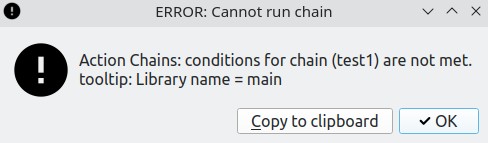 calibre, version 6.13.0 ERROR: Cannot run chain: Action Chains: conditions for chain (Read) are not met. tooltip: Last edited by ownedbycats; 03-05-2023 at 08:59 PM. |