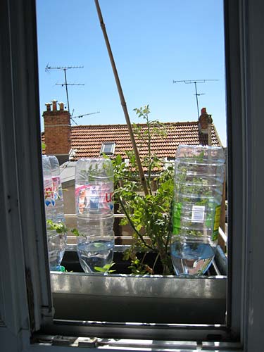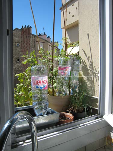 ![]() I've been preparing my plants for the holidays. My wonderful and irreplaceable concierge has agreed to come and water them when I'm gone. I set up lots of plastic bottles screwed on ceramic cones that are supposed to let water seep through as needed. I'm pretty sure I have too much irrigation now that the weather is milder, but I don't dare reduce it, what if there is another heat wave? I'm busy eating all of the rocket before I leave, and I have torn down the two oldest plants that had flowers already, to sow some more in their place. I don't know if that's going to work, maybe all the nutrients in the soil are used up already? To attempt to compensate I put a couple of fertilizer sticks in the soil. One of the tomato plants is growing lusciously, the others are less exuberant but they all have fruit now, and flowers still. I love watching the bees browse them. (Is that really the correct term? It sounds weird )