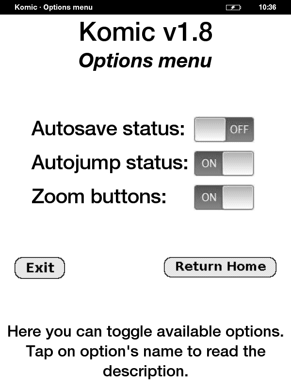 Set zoom buttons to ON to enable two small transparent buttons, one to zoom in and one to zoom out. It's easier if compared to "change image size" but less comfortable than pinch-to-zoom. Currently it's the best option I can provide... As regards scroll speed, you can set scroll to 600px or to 3px and it'll scroll with the same speed! I run komic on my PC and it scroll faster there (obviously). All I can suggest, is to use "smaller" images (the less the size in kb, the faster the scroll). I'll release v1.8 tomorrow as I need to test if everything works fine... I'll provide also new screenshots and new instructions showing the position of zoom buttons. A new feature is the ability to move and rename screenshots to a folder called "@Screenshots@" in /documents/Gallery so that they can be viewed using Komic itself. The folder is called using @ as it's an easy way of having it placed first in dropdown menus. This script is added in Komic's submenu inside the GUI launcher. Sorry for the delay!! |