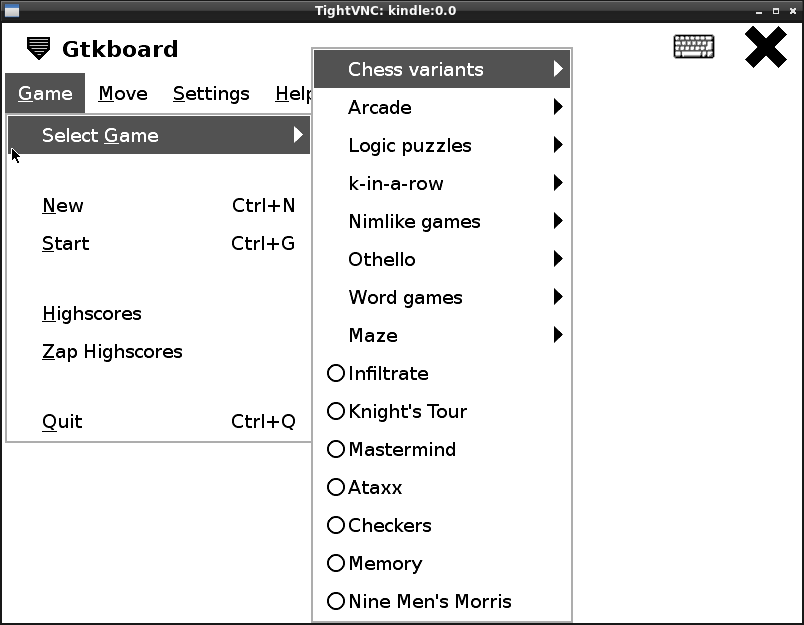 Double fingers - middle click. xmodmap -e "pointer = 1 3 2" to remap right to middle and vice versa. Xephyr = Run native. Window manager = Blackbox (Native) Games = gtkboard selection and the DOS ones from before... All Run native. I guess you could call that a fair result. will look to repackage it all back up but the actual REQUIRED support is fairly tiny. I am also 90% sure I can convince the games to run with the same wangle on FAT that we used on blackbox (simple redirecting crafted shell scripts) to save the need for stupid multiple copies for the games. TODO: make OSK sit on right level. push events to active app and not grab focus. (ie actually work) build/port/use different window manager (blackbox is not very "click" friendly ) fix horrific menus in games (err somehow) but yeah. result. no debian required.