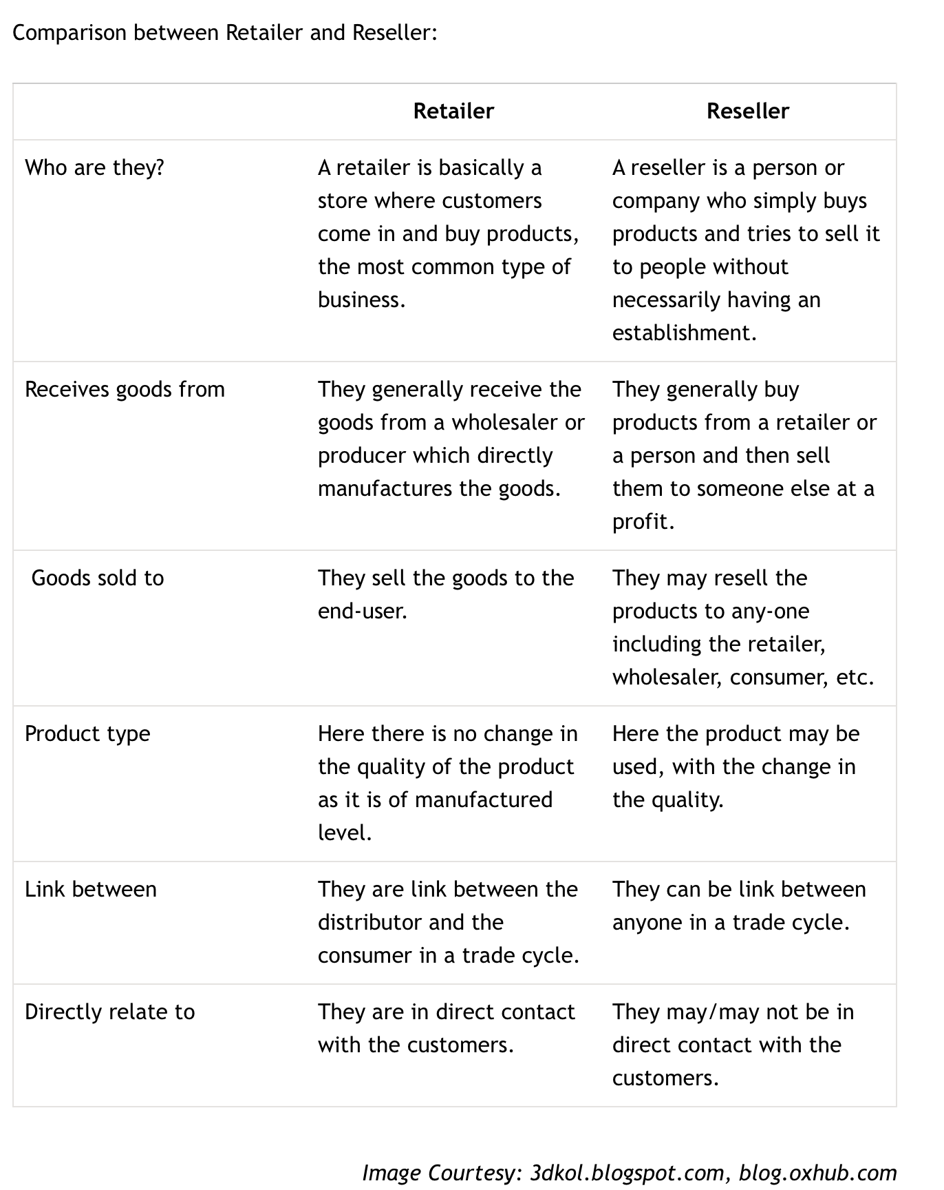 A reseller buys from a retailer and then puts it up for resale to make a profit. -- that would be false. I work for a reseller and we purchase from vendors (distributors), manufactures etc a complex web of buy/sell. Channel partners etc. A Retailer sells to end users (consumers) with a store. |
