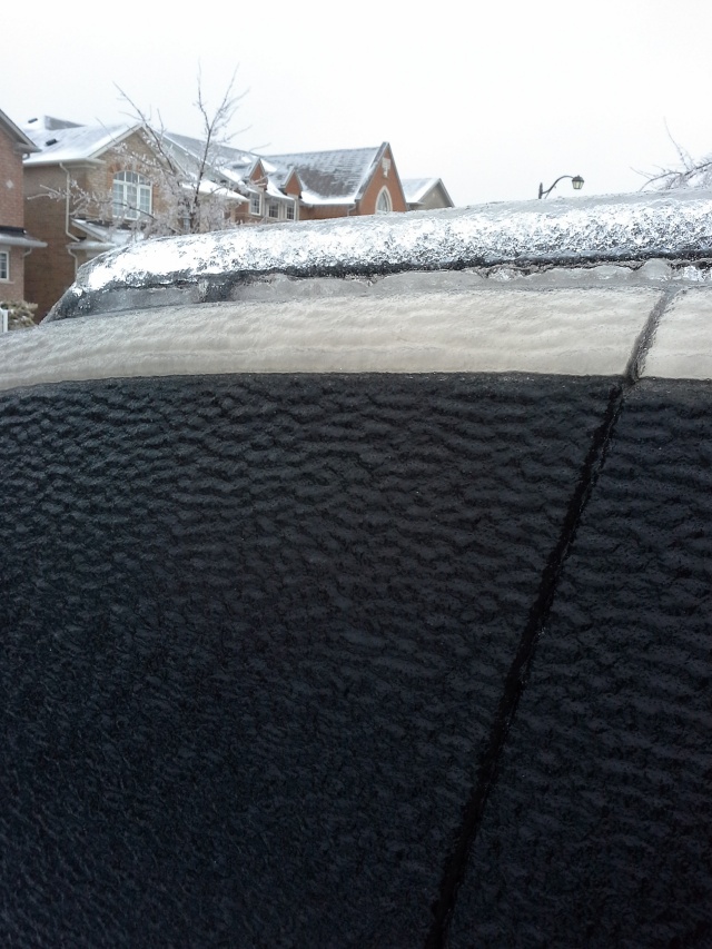 Dealing with freezing rain, which is expected over the entire weekend. Already have a significant layer of ice on the trees, cars and driveway.