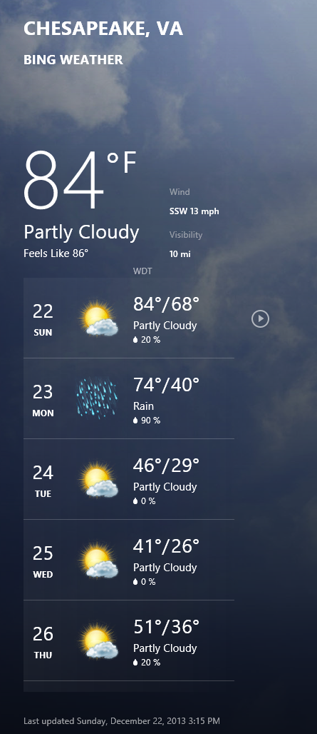 Sitting here in a pair of shorts and about to go outside and read my Kindle on the deck. That should tell you everything you need to know about the weather in Tidewater.
