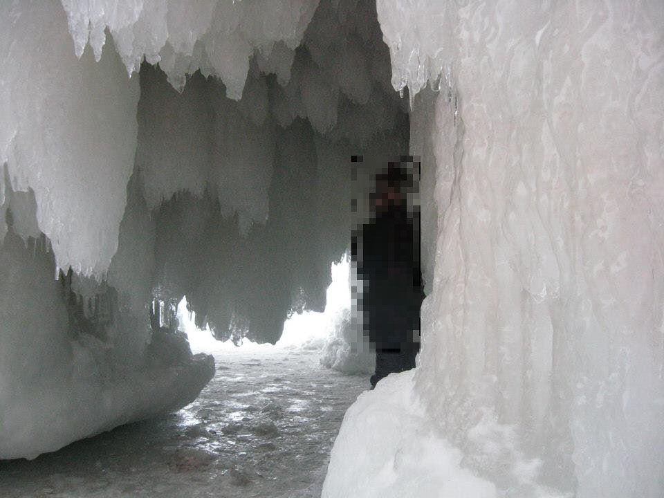 Yes, as you can maybe see there was a lot of snow cover on top of much of the ice and the sky conditions was overcast with clouds. When the ice is free of snow and the sky is clear with bright sun it is really impressive, like a fantasy cave of clear crystal. One can see through the clear ice to the lake bottom.