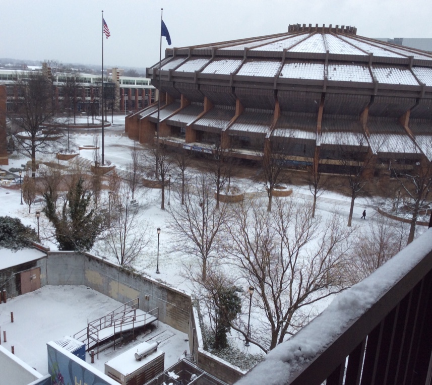 It's snowing here in Richmond. Here's the view from outside my room at the Hospitality House this morning.