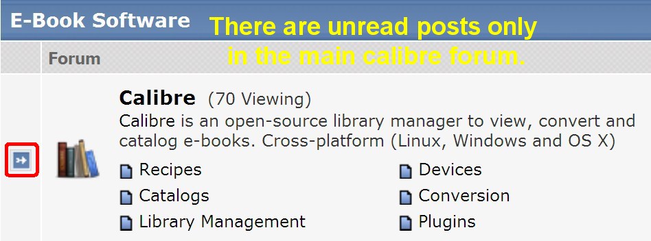 For anyone else still struggling easily knowing what forums have unread messages here is another way to tell. From the front Mobileread forums page check the icons by calibre's entry. If the icons are blue all posts are read. View attached images for clarification..