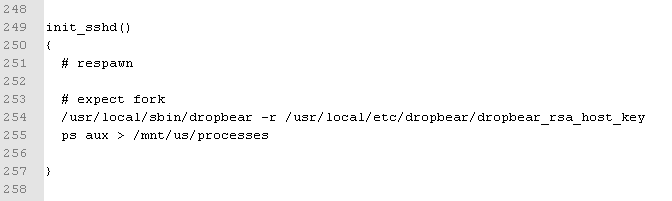 root 463 0.4 0.2 2296 668 ? Ss 11:23 0:00 /bin/sh /etc/init.d/rcS root 475 0.0 0.0 2296 252 ? S 11:23 0:00 /bin/sh /etc/init.d/rcS root 476 0.3 0.2 2296 696 ? S 11:23 0:00 /bin/sh /etc/rcS.d/S50diags start 1: Unusual 2: Probably indicates the kernel ran an "Early User Space" root before it got to where it is at now. 3: Indicates that 11 jobs ran to completion between pid 463 and pid 475 4: lookup code Ss, that is probably an rcS from the 'EUS' in the initramfs that did not get cleaned up, might be something else. In init_sshd(): Ref: http://linux.die.net/man/8/dropbear Add -E and also redirect 2>to_some_/mnt/us/filename Add -p 22 :: no address specified, will listen on all available interfaces Add -g Add -K 0 :: no time-out specified, disables keep-alives - - - - And if really desperate - add an strace -fF with output to /mnt/us/somefilename Last edited by knc1; 10-15-2012 at 10:07 AM. |
