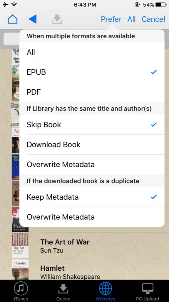 Since you couldn't have had "Calibre's Date" data downloaded into MapleRead previously, and re-downloading hundreds or even thousands of books from Calibre to MapleRead with v1.6.1 might be a pain, the new version will also introduce the following new feature - batch download options to overwrite metadata without re-downloading books from any generic OPDS server, including Calibre's Content Server This is obviously useful by itself even when you don't need Prefer Calibre Date, and is technically not restricted to Calibre's server. |