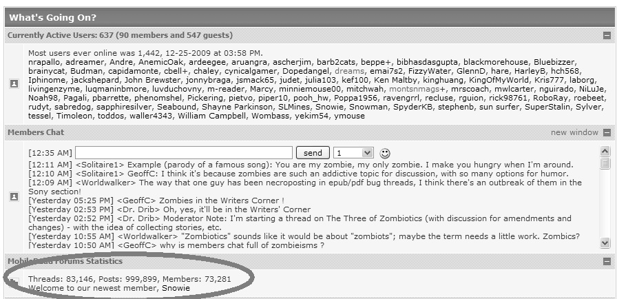 Currently: Threads: 83,146, Posts: 999,899, Members: 73,281