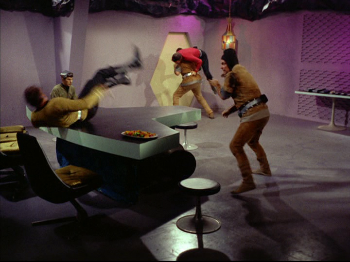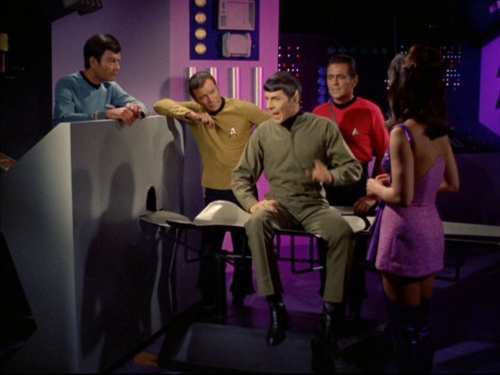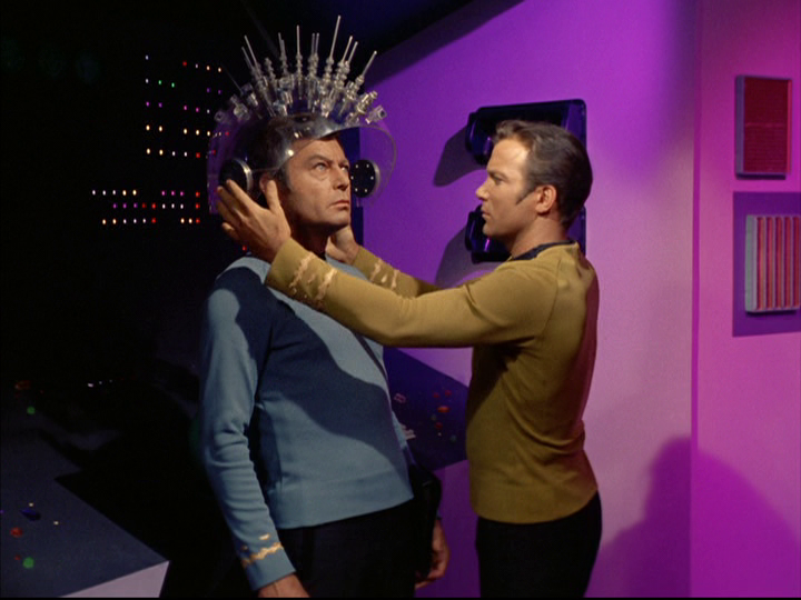 This one's a definite stinker. It also gave me very strange dreams when I watched it back in November. It starts off well. The Enterprise is chasing after a spaceship, then a mysterious woman suddenly pops onto the bridge and does something with her wrist remote thingy. BOING! Everyone passes out. Attachment 205990 Anyways, everyone wakes up on the bridge. Spock is missing, and Dr. McCoy is insisting that Kirk get down to sickbay, RIGHT NOW, because, well: I love how DeForest Kelley delivers such ridiculous dialogue like "his brain is gone!" with such conviction. Anyways, a lengthy segment of them tracking the ion trail of the mysterious spaceship, then deciding to beam down to "planet six." Which is later referred to several times as Sigma Draconis Seven. Yeah, that kind of sums up the episode. After a while hanging out on Sigma Draconis 6.7 and getting into fights with cavemen, McCoy beams down with the brainless Spock. They leave Mr. Chekov and the two redshirts behind on the surface. They decide they might as well get comfortable. Later on, we get such amazing dialogue as: Kirk: What is this place? Woman: This place is... here. And this: At one point, they manage to contact Spock's brain on the communicator. Who promptly admits that "there is a definite pleasurable experience connected with the hearing of [Captain Kirk's] voice." Oh, okay then. At another point, the women leave, leaving the cavemen guarding the prisoners. They also conveniently leave all their equipment in the room. Kirk: This fellow is keeping us from our property. Scotty: Isn't there a way to correct that situation? Kirk: I certainly think that science might provide an answer. McCoy: It does, Captain. (Okay, this part genuinely made me laugh.) So eventually, the plot leads up to sticking Dr. McCoy into a futuristic hairdryer in order to give him the knowledge to re-implant Spock's brain. "Of course. Of course. A child could do it. A child could do it!" Of course, he starts forgetting halfway through, so they re-connect Spock's speech center so he can direct his own brain surgery. Makes perfect sense. His hair is fully intact afterwards. Dr. McCoy regrets re-connecting his mouth. ... honestly, it's kind of a fun episode if you don't take it too seriously.