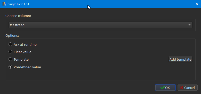 All I'm trying to do is find any $title which contains a colon or a hyphen, and move the second half to a custom #subtitle field. Right now I have the find & replace working fine - the regex I use is two-stage (I don't know how to do it in one stage with the search and replace action) where I search for .+ ?[:-] (.+) and put the first match into the #subtitle field, then do a second search for (.+) ?[:-] .+ and replace the $title field with the first match, to remove the subtitle. I'm trying to move these two saved searches into an action chain, though, and therefore I'd like to be able to just run it on any selection in my library. With the way I have it configured, though, this causes issues on books which don't have a [:-] in the title, due to how search & replace seems to work (if no capture groups exist, \1 just matches the whole search, so the full title will be transferred into #subtitle). Anyway, what I'm trying to do now is to use a template scope to filter the action to only run on titles which contain [:-]. The problem I'm having is that I guess I'm just dumb and I can't figure out how exactly to just use a template to limit to a subset of my current scope. There's a contains(), but that seems to just give back text. I've tried downloading and reviewing a few chains posted here that have scopes, but it doesn't make much sense to me. I guess I haven't wrapped my brain around exactly how calibre templates work. I'm sure this can all be done in one step, the main thing I have difficulty understanding is how incoming and outgoing variables are handled, or basically the 'state' of everything that I'm acting on. Thanks for reading! Last edited by noahkiss; 06-27-2024 at 10:13 AM. Reason: trying to fix formatting |