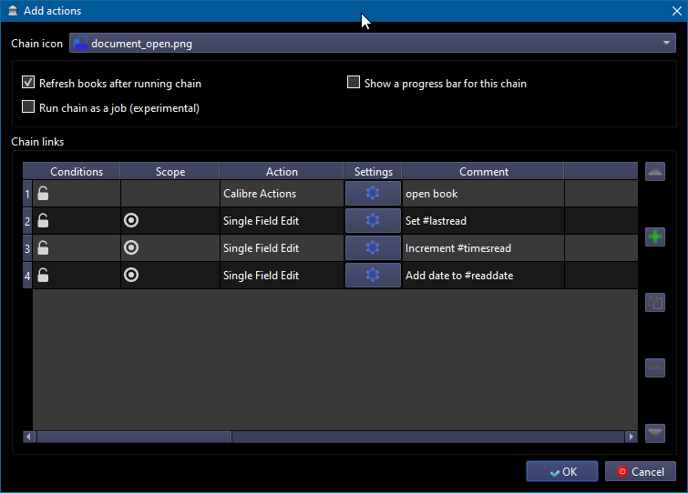 a) double-clicking in Cover grid view is unaffected. b) it doesn't happen when the event "Book List Double Clicked" is unchecked. Now I'll try to explain. I have a chain with the following actions, kindly provided by ownedbycats, that runs on event "Book List Double Clicked": - open book - set #lastread - Increment #timesread - add date to #readdates On list view, when I double-click the title of a book that contains a PDF format (which is my default "preferred input format" in Behaviour preferences, for double-clicking priority purposes), it runs the chain fine, sets all fields correctly. However, when I task-switch back to Calibre from my default system PDF program, the title cell shows as if waiting for an input, I mean, it's been inadvertently selected for editing, as if I had pressed F2. What happens next is that, even without making any changes to the title field, when I click anywhere outside the title cell, I get the message in the attached log - "PermissionError: [WinError 32] The process cannot access the file because it is being used by another process" Also, that will occur either when I have the tweak doubleclick_on_library_view set to 'open_viewer' or to 'do_nothing'. Since I started using this chain, I use the latter (do_nothing). I wonder if some tweak to the "Book List Double Clicked" event or to the chain itself could prevent that? Last edited by Comfy.n; 08-19-2024 at 05:43 PM. |
