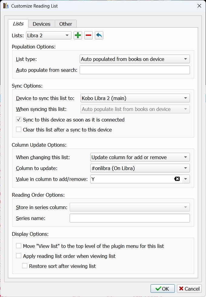 What I do is setup my list to add a Tag when a book is added to the list. You could have a different tag name for each list. I can’t remember off top of head if I allow a custom tags column to be used rather than the default calibre one, I “assume” I did. Personally I only have two lists so having my extra “Pending” tag for books on my “Add to Kindle” list that turns into a “Kindle” tag when synced I’m fine with being in the calibre tags column which is always visible in my views etc.