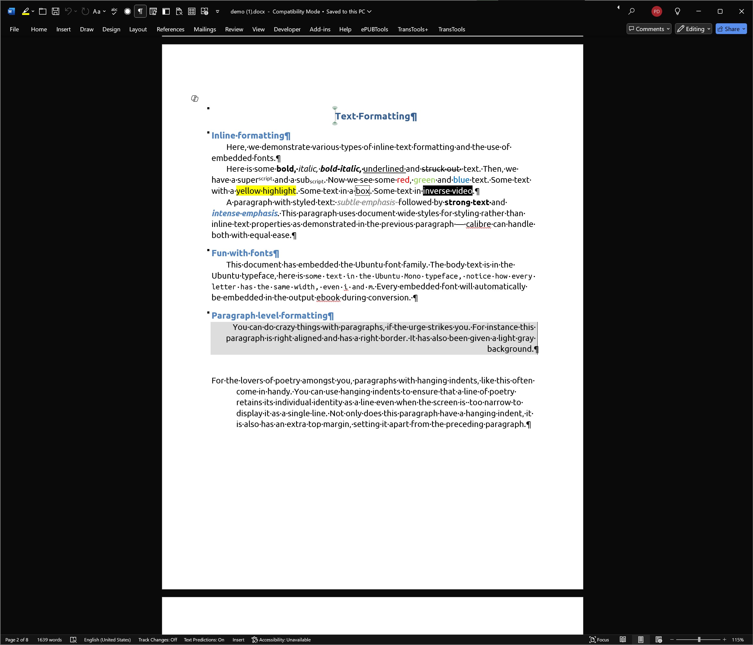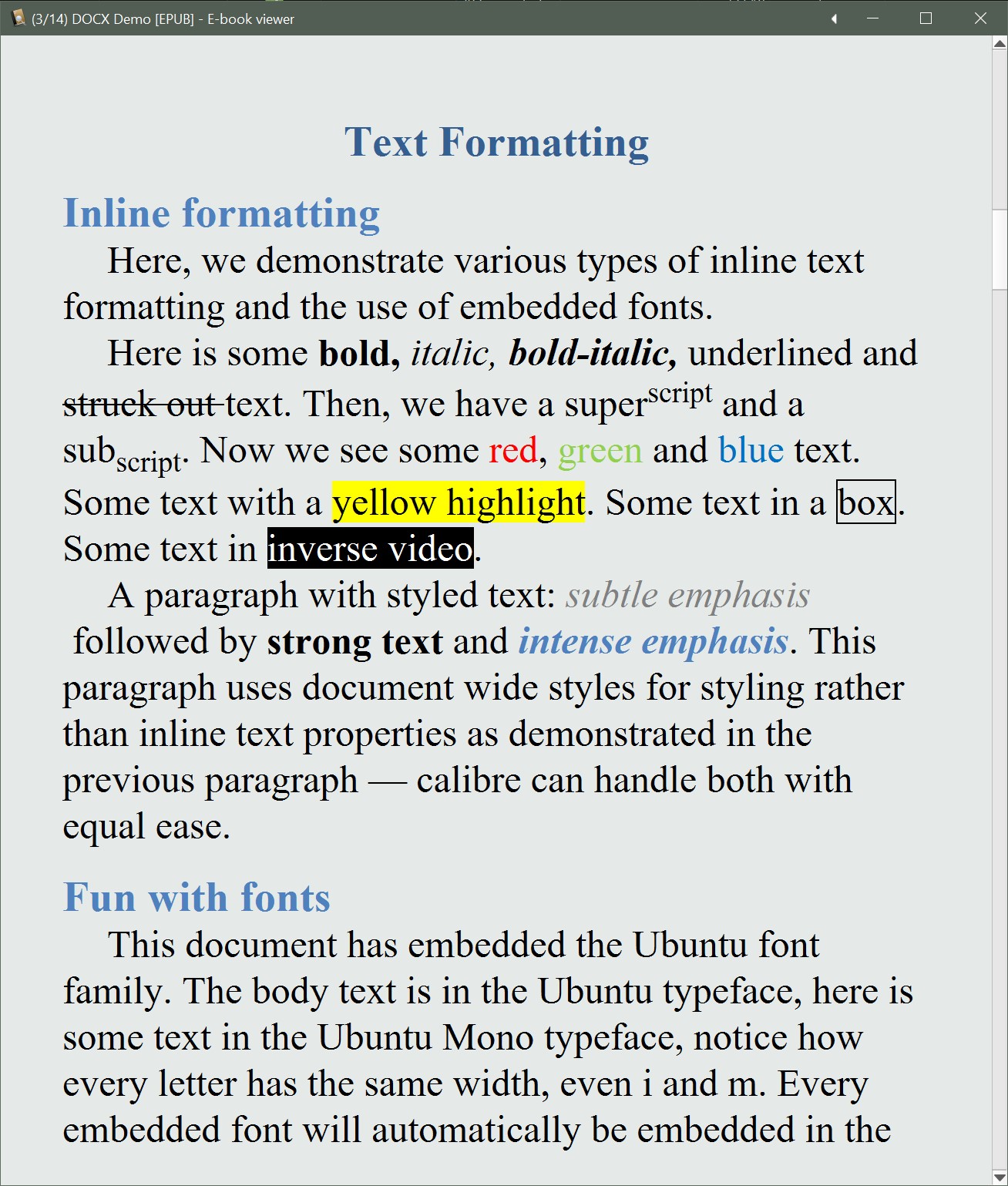 I’ve been using Calibre to creat epubs from Word documents and was wondering if it’s possible to save/transfer highlighted passages to appear in the finished epub? Hope someone can help. Nige |