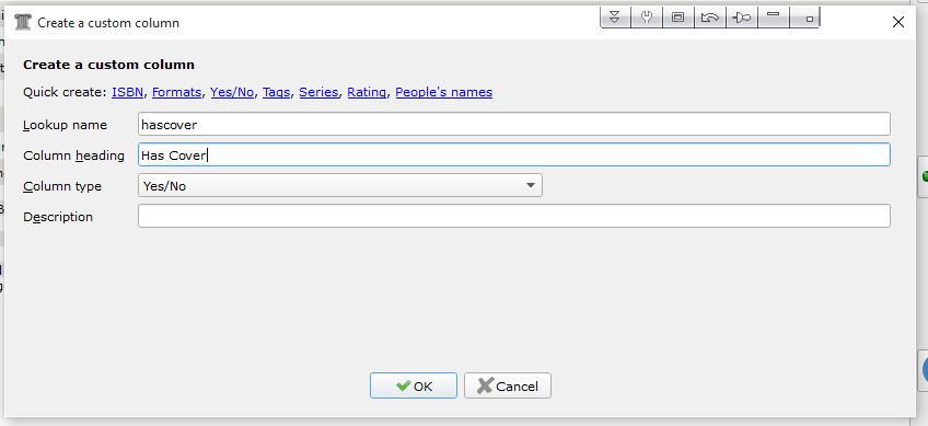 Trying to find the current template recipe to put into the "Custom Column" creation interface that will show a Yes/No check for if the book has a cover or not. I've lost a bunch of covers, and I would hate to have to go through one at a time to find if there's a cover or not. I realize that the UI will show it if I just go to the thumbnails view, but I'd really like to sort on the "covers" column to just get all the ones that DON"T have a cover in one group. I've been looking for over an hour here, and going through all the "cover" and "column" custom searches in this forum, and there's too many returns. |