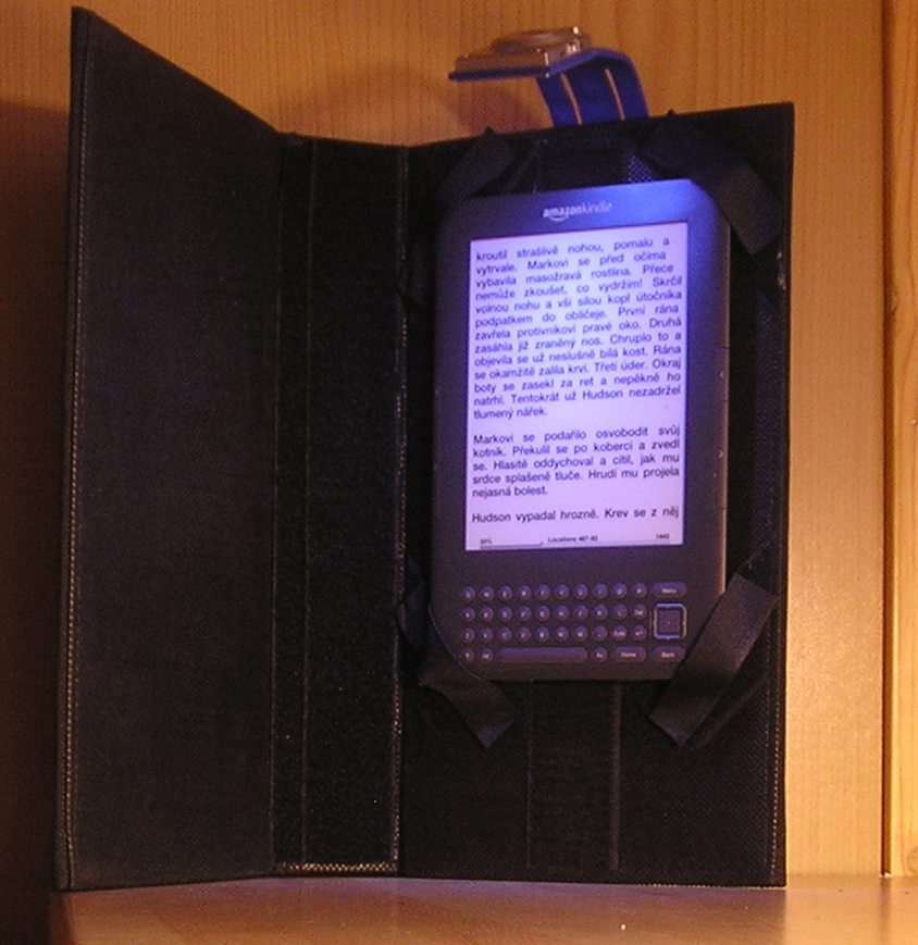 Especially for bed reading, so I do not have to hold kindle in my hands - I just lean it on my big paunch - One hand is for holding cover and turning pages, second hand is for holding of a big piece of chocolate.... I used velcro fastener on this cover, so I can easily fasten K3 without any mod on it. Last edited by jozicka; 10-28-2010 at 08:57 AM. |