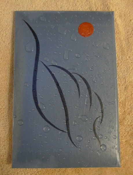 The sleeve consists of several layers. The innermost layer is a felt liner, then a poly plastic folder held together with duct tape, then a Tyvek envelope painted with several coats of artist's acrylics, and finally an outer layer of clear vinyl "contact"/shelving paper. I spent less than $5 on materials, but I had some of the stuff on hand already. One of the design goals was to make something moderately protective against water. Making a sleeve that could be fully immersed seemed too ambitious, but one that could survive a coffee spill or light rain seemed potentially feasible. The flap is folded over itself and held in place with velcro, forming a crease that seals the opening. I tested the case in the shower, using a Kindle-shaped piece of foamboard covered with a paper towel. After five minutes in the spray, being turned in various orientations, the paper towel was still bone dry! Honestly, I was kinda skeptical this would work, but it did. Still, I'm sure I'll put the case in a ziploc bag for extra insurance when water is really a concern. |
