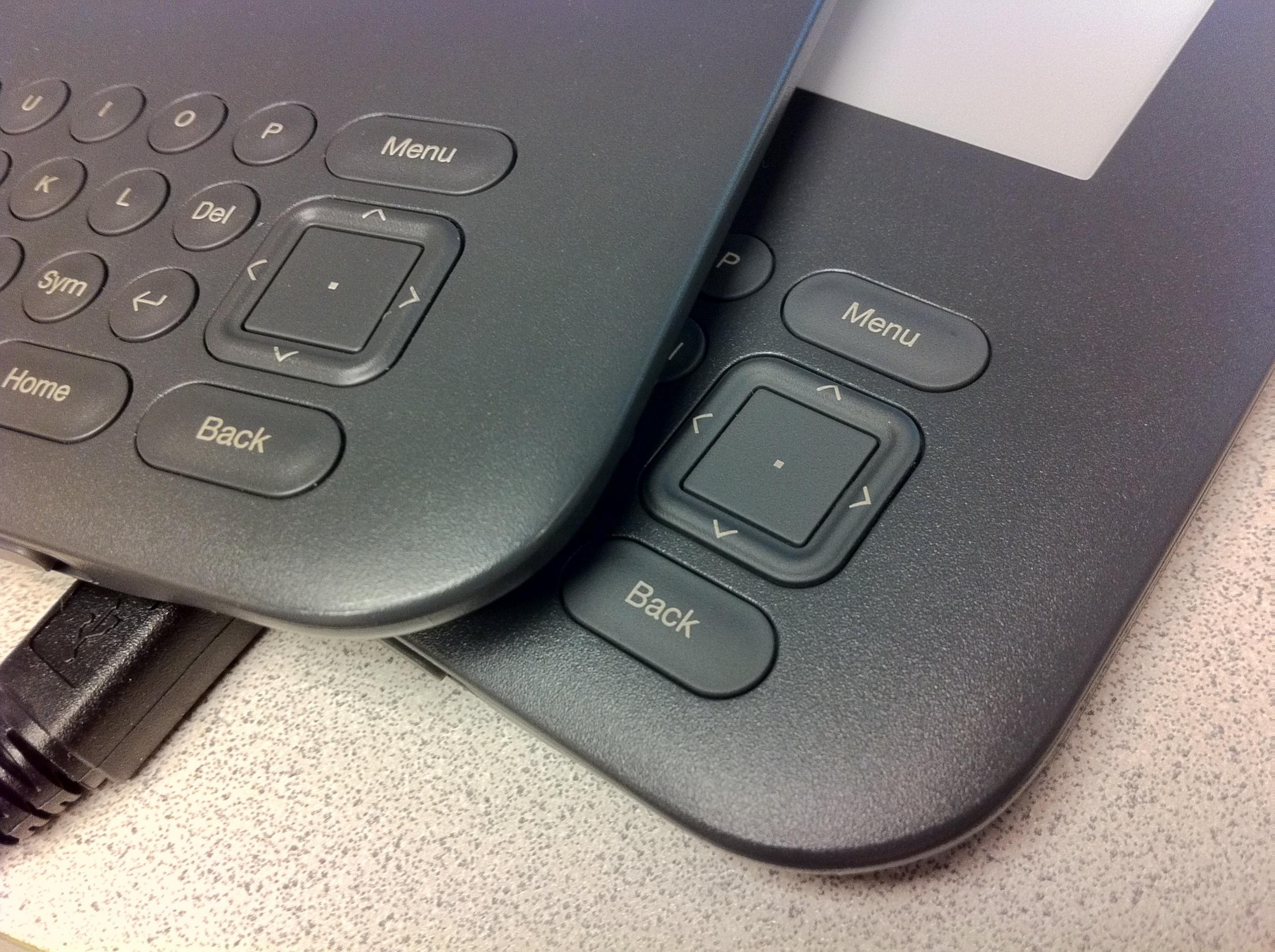 I received a new Kindle yesterday to replace the one I got on launch day since somehow the bottom of the case had bent slightly (and it was never dropped in such a way to cause that kind of damage) and a small gap existed that slightly exposed the inside of the Kindle (e.g. the side of the USB port could be seen). I didn't think to mention it to the phone rep, but the unit also had the slow-sliding-switch problem (and always has); the replacement's switch slides freely and as expected. I noticed immediately, though, that the keyboard and four-way controller have a new texture that feels and looks slightly different -- antislip, perhaps. This is only on the keyboard and controller, and there is no change in the page-turning buttons. Here's a photo I took. It may be a little hard to see the change, but if you look closely the keyboard on one of the Kindles isn't as shiny as the other -- that's the new one. Model no. is D00901. The "old" one goes back to Amazon today or Monday. |