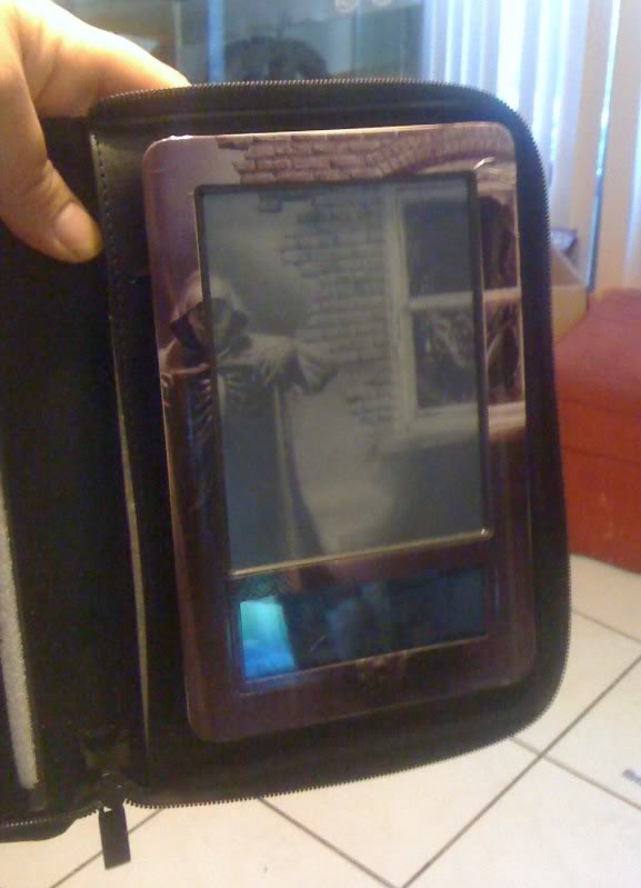 These days I prefer to use the At-A-Glance planner cover available at quite a few retailers with my own additions. It has 1/8" thick Plexiglas with a layer of foam padding on top of that slid into each side so the foam is toward the reader. I then attach the reader to the back cover suing Command picture hanging strips (these are the same strips that many cover manufacturers use under different name such as 'click strips'). The cover zips all the way around to keep debris out while the padding should protect well against drops and the plexi will protect the screen against pressure spots and flexing. This does leave quite a bit of room around the 650 where as it was perfect when I had my nook. I recently downgraded to a smaller planner cover but I still need to reinforce the covers with plexi. I have it padded with the neoprene sleeve from one of my kids 300s double sided taped inside the front cover (with the Reader logo showing of course). If anyone wants, I will see about taking pics later. |