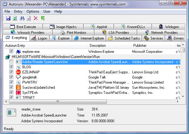 Frankly, i haven't even checked the registry - i just combed through all the active processes (including svchosts') and, since i didn't find anything related to Acrobat, concluded there was no speed loader this time around. ![]() I'll kill it and see if it has any effect on loading speeds. |