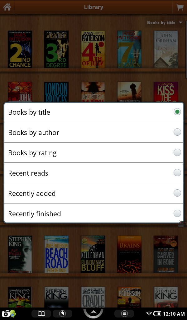 But one pet peave that's really irkng me is the default Library menu screen. Hate it with every fiber of my being. I've tried apps like Aldiko and for the life of me cannot get the books i already have in the nooks storage to show or import into it's shelves. Any idea on a good non-default library menu system that works well? Regards, Joe W