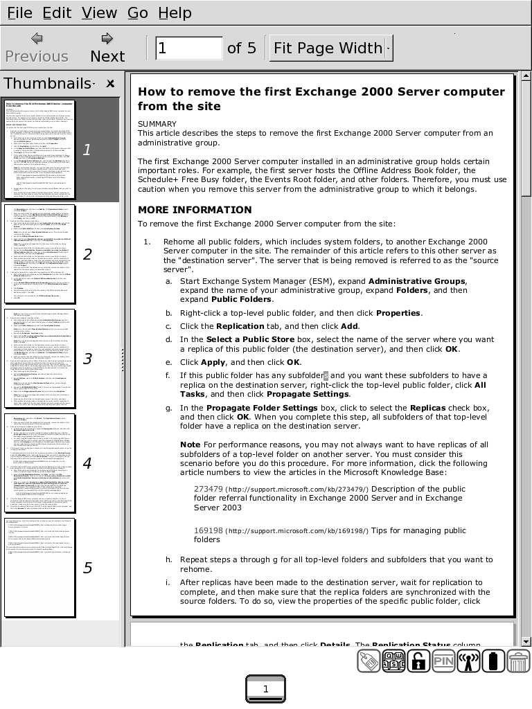 I think one way of providing a similar function on the iLiad would be a "thumbnails" view of a PDF or Notes collection. We recognize pages quickly based in part on the general shape of the text on the page. It would be easy to spot PDF pages with a bit of scribbling on one side, and in many cases, we could also spot chapter heads, pages with lots of dialog, etc., that might make it easier to find the part of a document one wants quickly. This should be even more effective with handwritten notes, especially when they include diagrams. So... is this something that could be added by the developer community? |