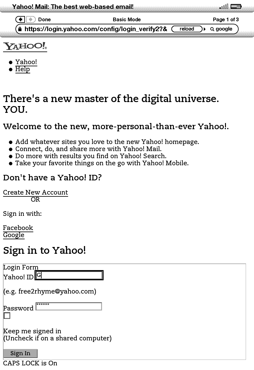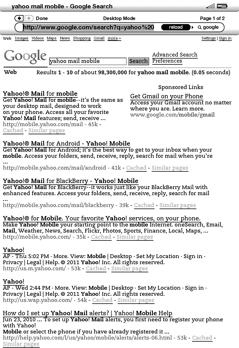 There is a mobile version of YahooMail at: http://m.yahoo.com/mail Why don't you use that? btw, I got that link from Kinstant ( http://www.kinstant.com ), which has quite a number of links to mobile versions of websites, including fields in which you can Kindle-friendly-ize whatever site you want. It even works with Google News (I just put news.google.com in one of the custom fields and it worked fine.) Last edited by chyron8472; 03-11-2011 at 11:50 PM. |