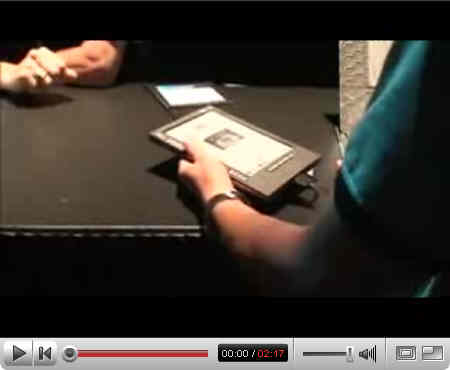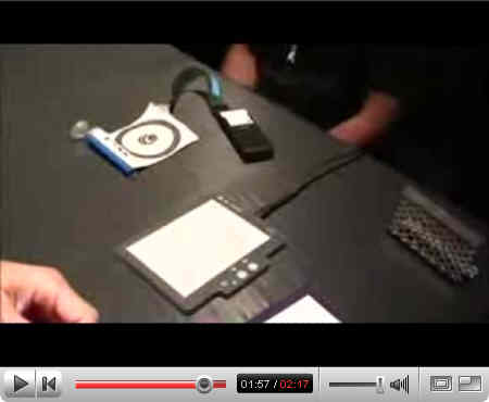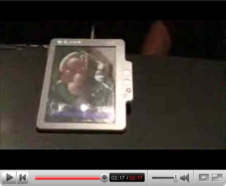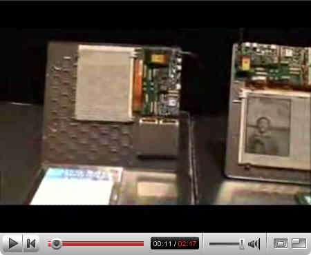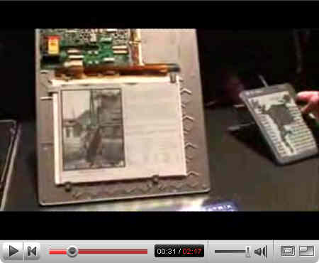 It is amusing that they show the iLiad in landscape mode. The H2, shown after the iLiad, was time ago a custom prototype by an engineer of e-ink labs, Holly Gates (so the H, I thought, even if somewhere it is labeled H2O), I am surprised to know he has updated his design to support colour. The original H2 was "a Gumstix SBC with 400MHz Xscale processor running a modified 2.6.7 Linux kernel" and run the display using the LCD port of the Xscale chip. The reference to Harry Potter is a good one. I still think that they could put a simple slow display with a solar cell to case the "deluxe edition" of Harry Potter, next Xmas.
