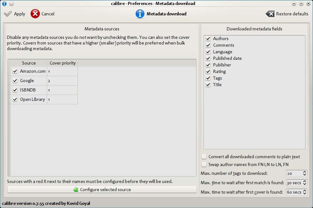 The new dialogs work great in a quick test. I have a question regarding the metadata download preferences, though: Will the field selection in the right-hand pane override the field selection for individual metadata sources?