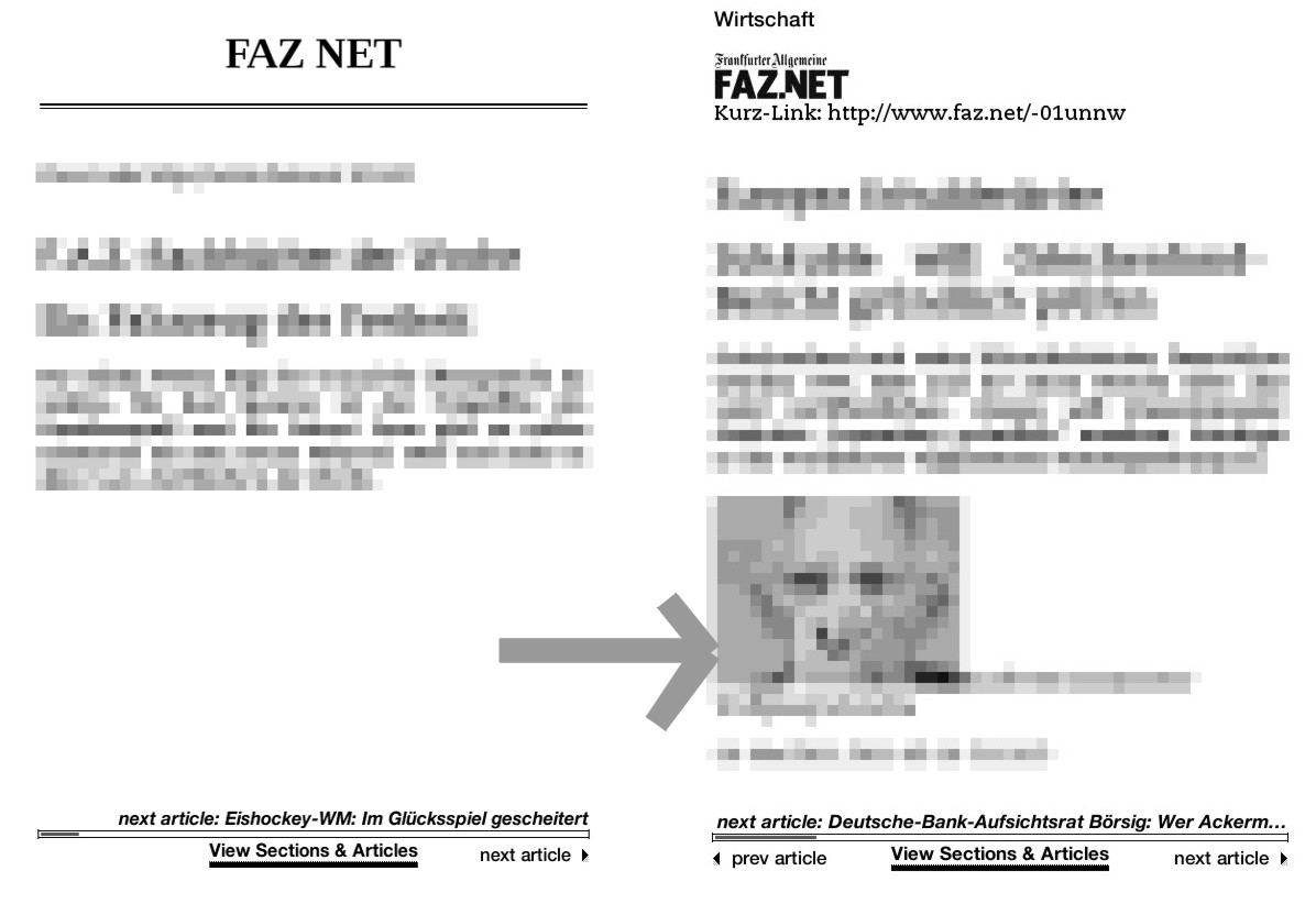 yes it is different, becaus it has the full range of articels that can be received from faz.net and the categorization from the real-print-version. greetings |