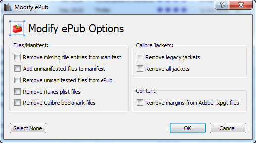 Since the Find Duplicates thread worked pretty well (I thought at least) as a combination of technical discussions and beta versions I have renamed this thread and will attempt the same here. Attached is the version of the plugin as it stands with the functionality you can see in the screenshot. I have run it against my own library and am happy with the modifications it made. But as with anything if in doubt make a backup of the ePub you are modifying first or copy it to a test library if you want to be 100% sure that if it did do something unwanted you can reverse it. You are prompted before it updates your library with the modified epub, and you can use the path from the log file to view that modified version manually before clicking yes if you want to see what it has done first. As always, feedback and suggestions appreciated. Last edited by kiwidude; 05-31-2011 at 04:13 PM. |