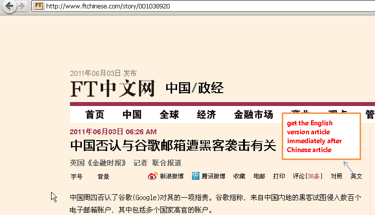 RSS is FTChinese The article always has Chinese version, and sometimes with one more English version. I want to get the Chinese version article from the feed, and English version one if has, the latter has a link in Chinese version article. For easy understanding, I attached pictures to explain. I wish the result be Feed Title (with today date) A article in Chinese A article in English B article in Chinese B article in English C article in Chinese (has no English link) D article in Chinese (has no English link) E article in Chinese E article in English |